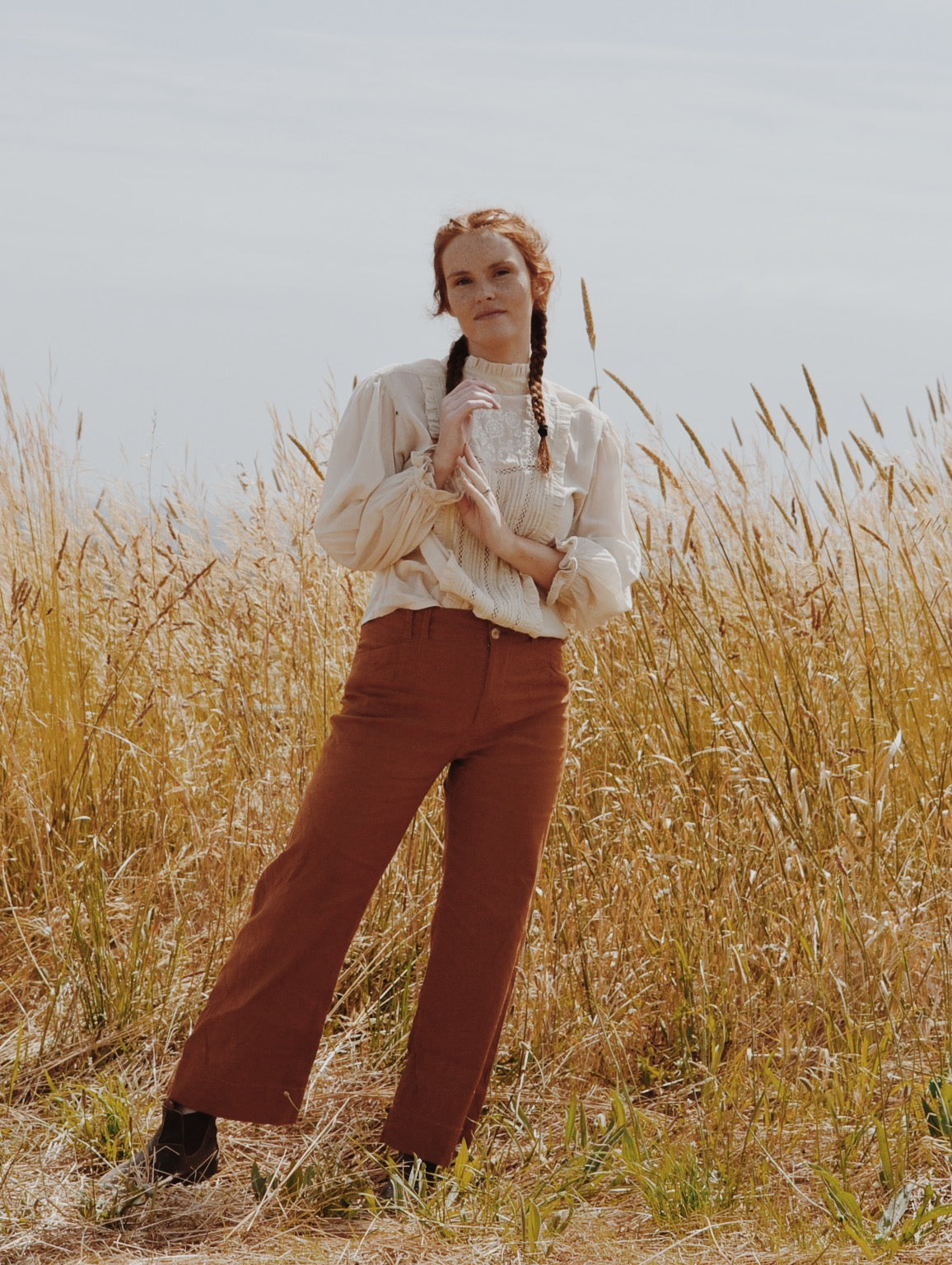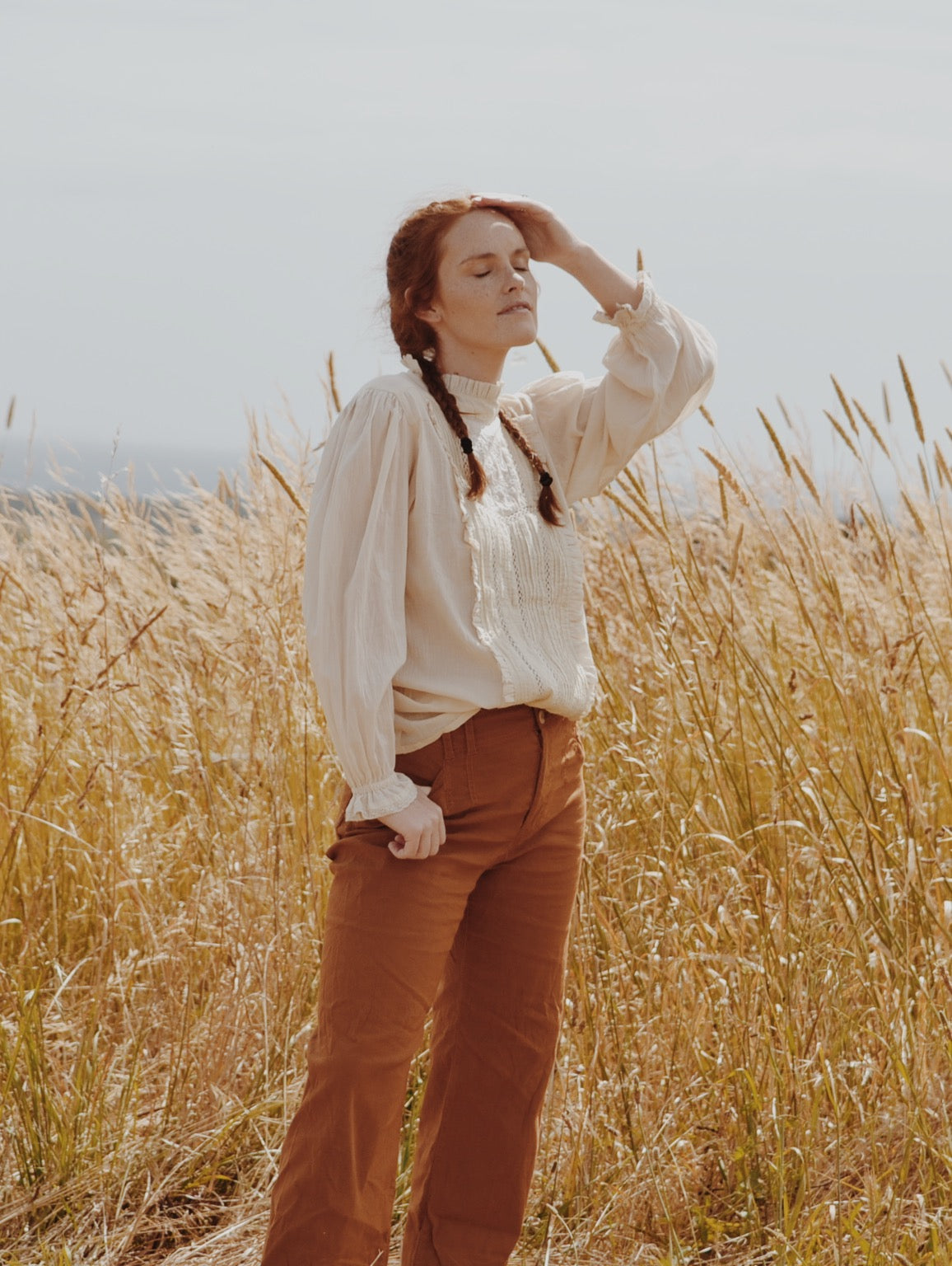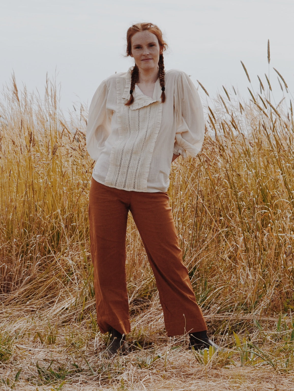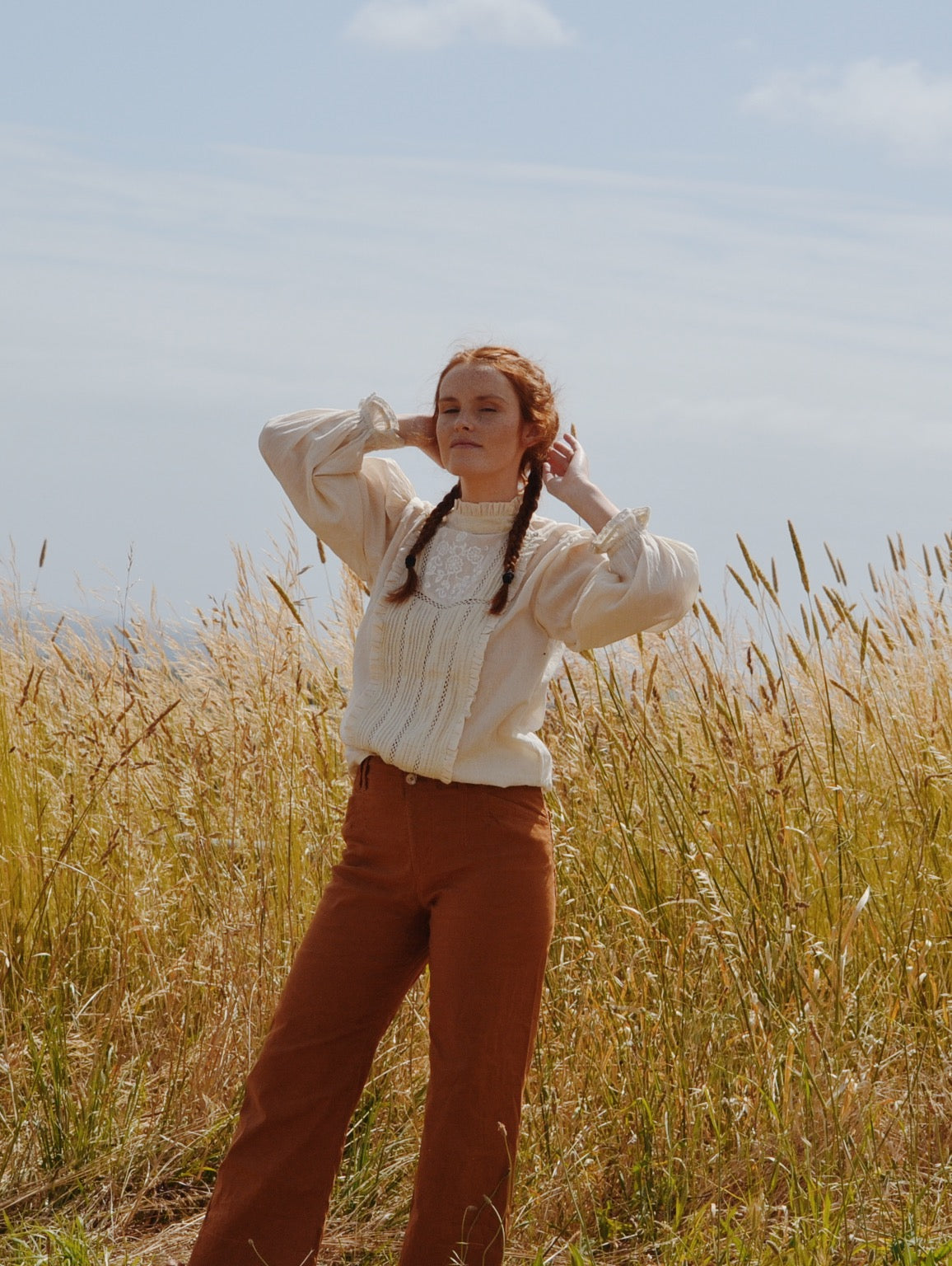 A classic blouse you will treasure, made for slow days spent wandering in a reverie. This beauty will take you to a time and place far away. Little nods to nostalgia include the Edwardian inspired high neckline with gathers, lace detailing, pin tucks and a beautiful embroidered feature.