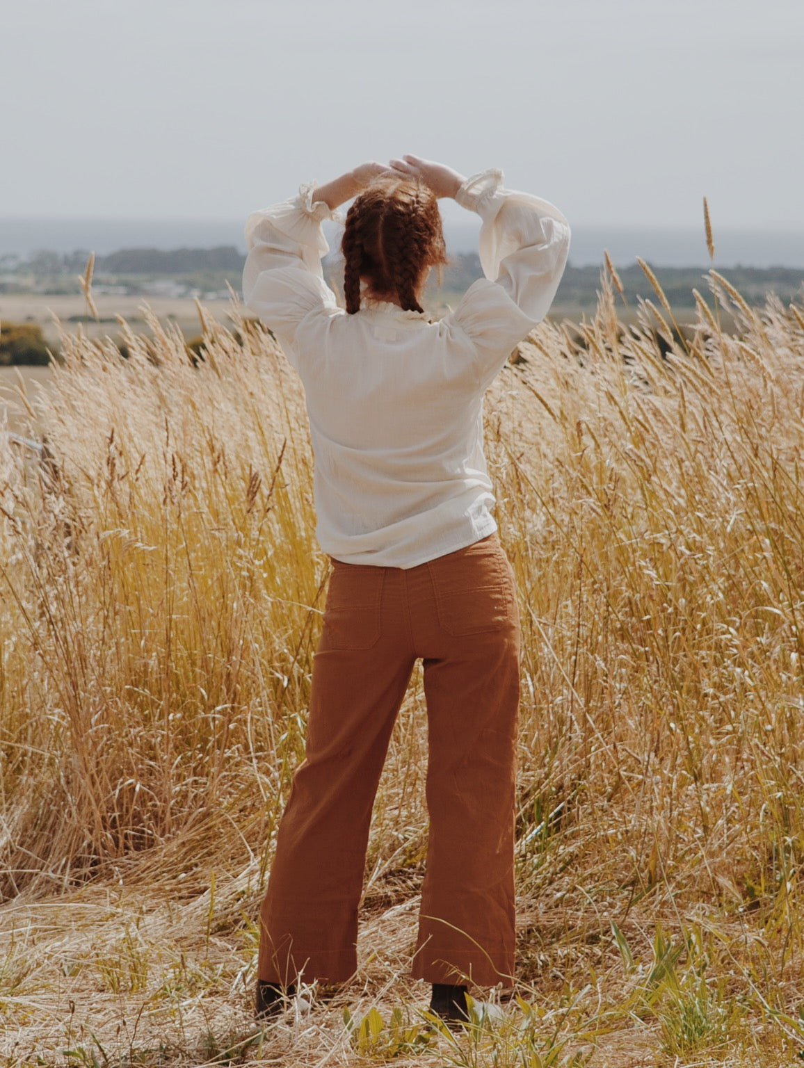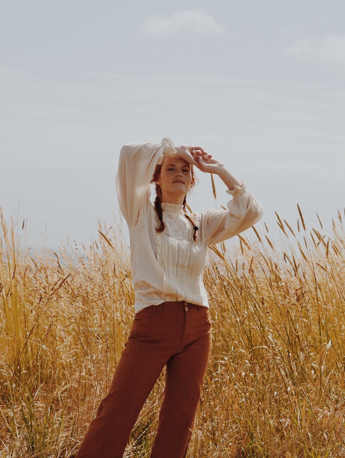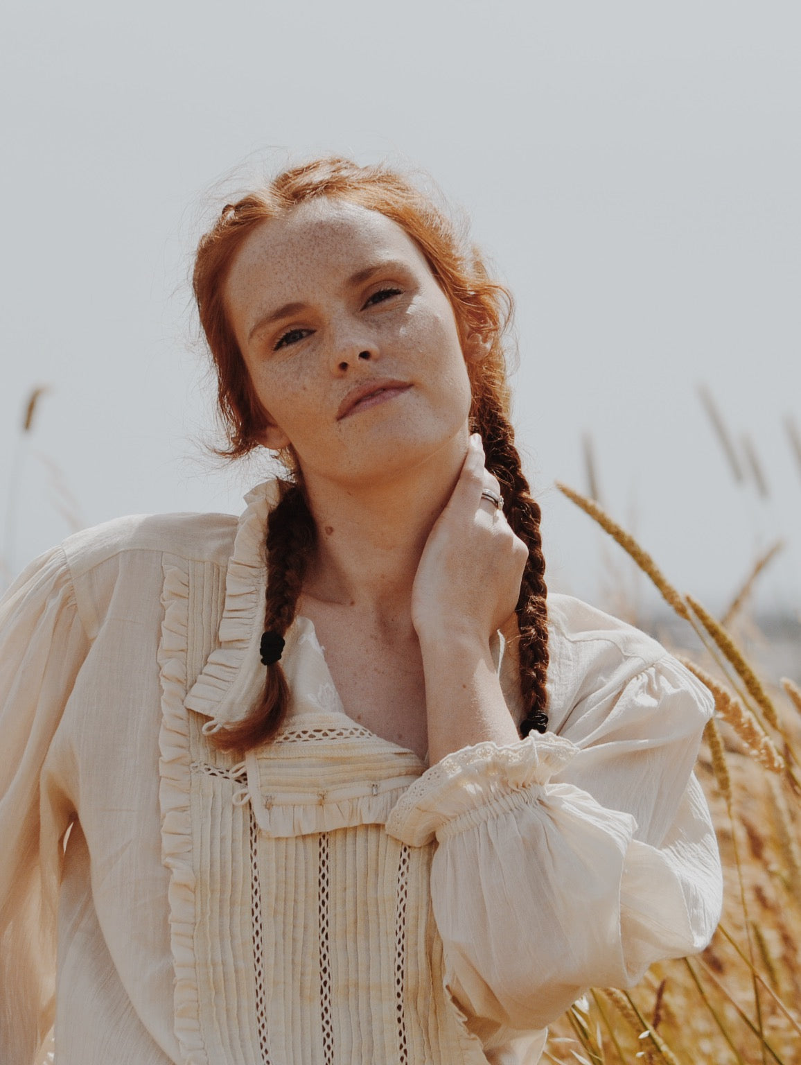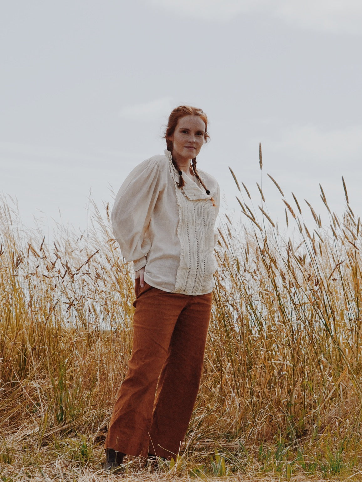 A classic blouse you will treasure, made for slow days spent wandering in a reverie. This beauty will take you to a time and place far away. Little nods to nostalgia include the Edwardian inspired high neckline with gathers, lace detailing, pin tucks and a beautiful embroidered feature.