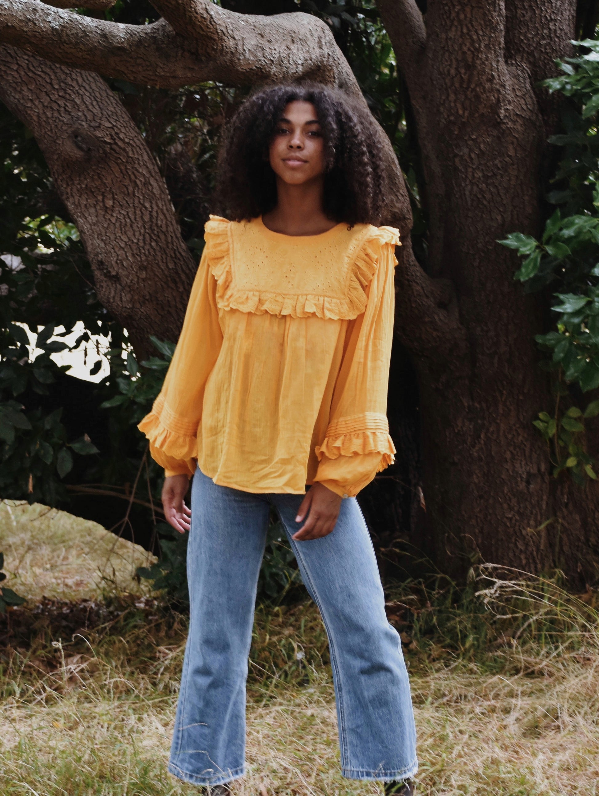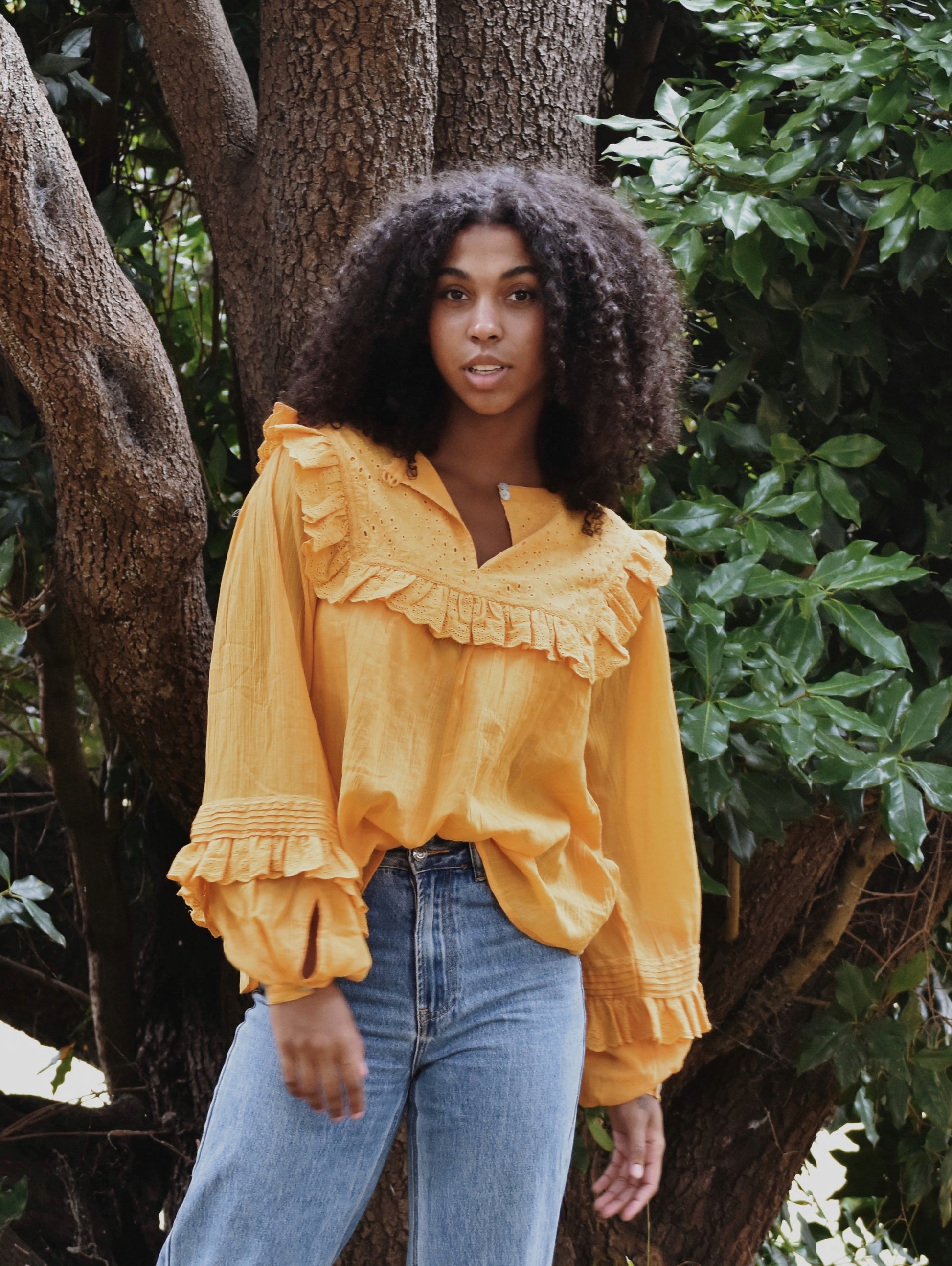 100% RECYCLED COTTON GAUZE - BEATRIX BLOUSE MUSTARD YELLOW