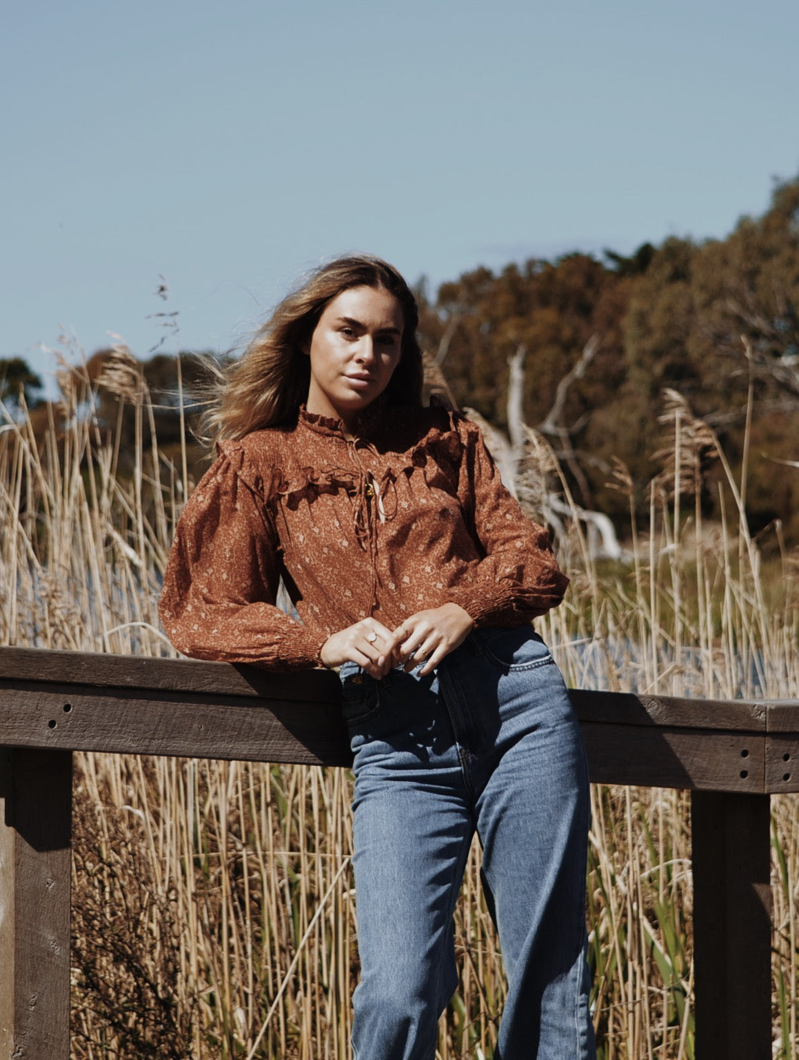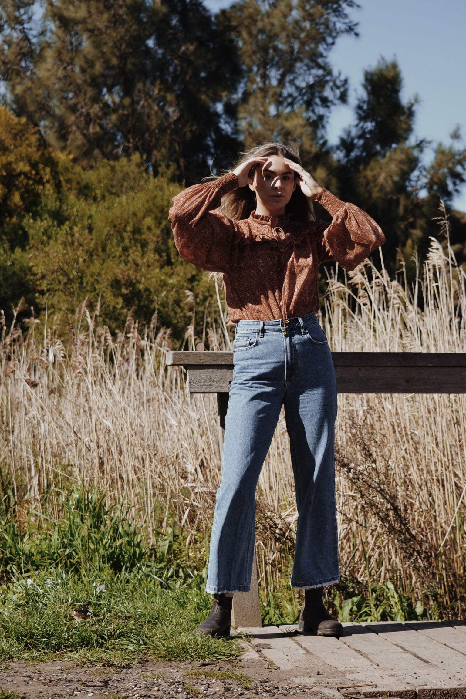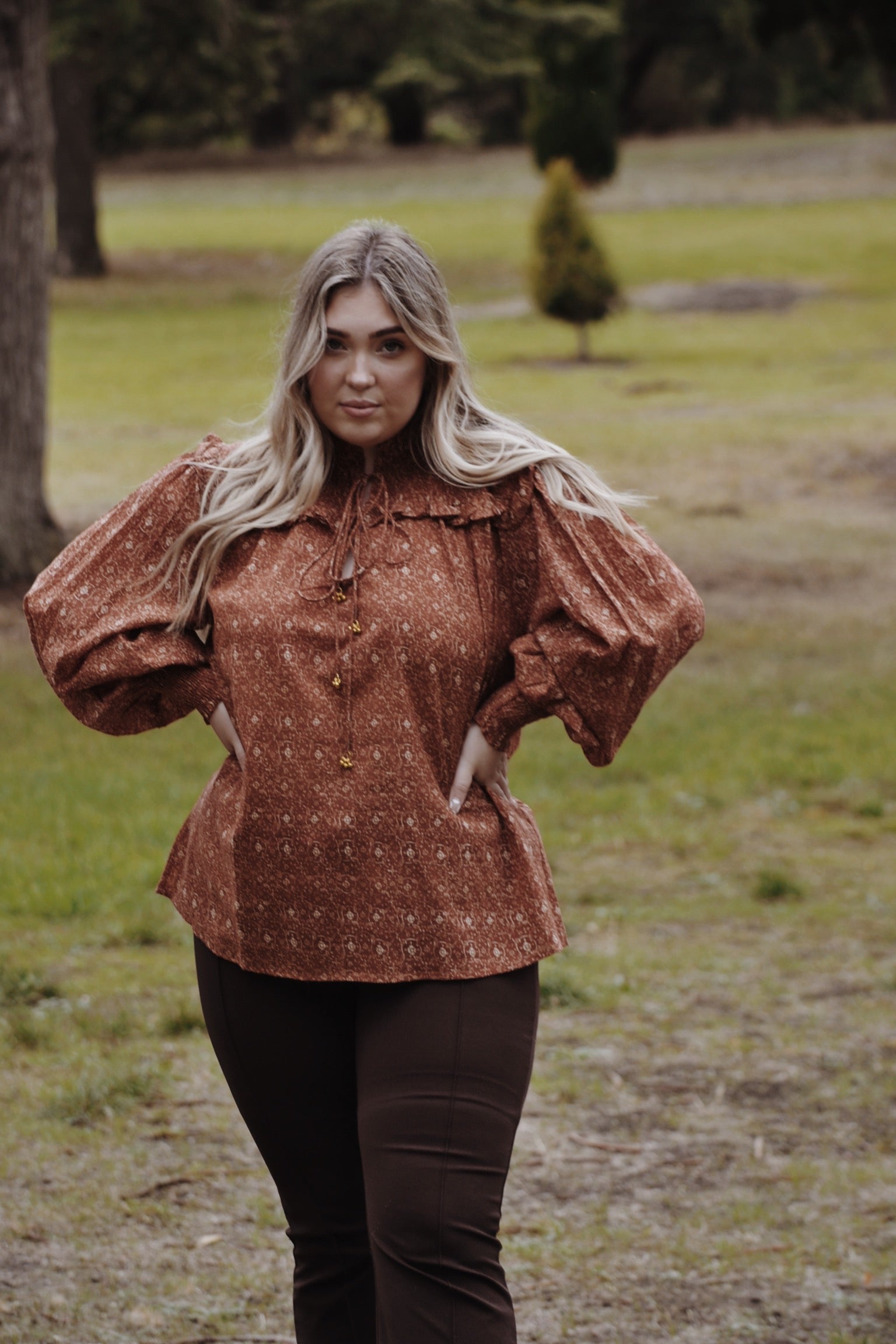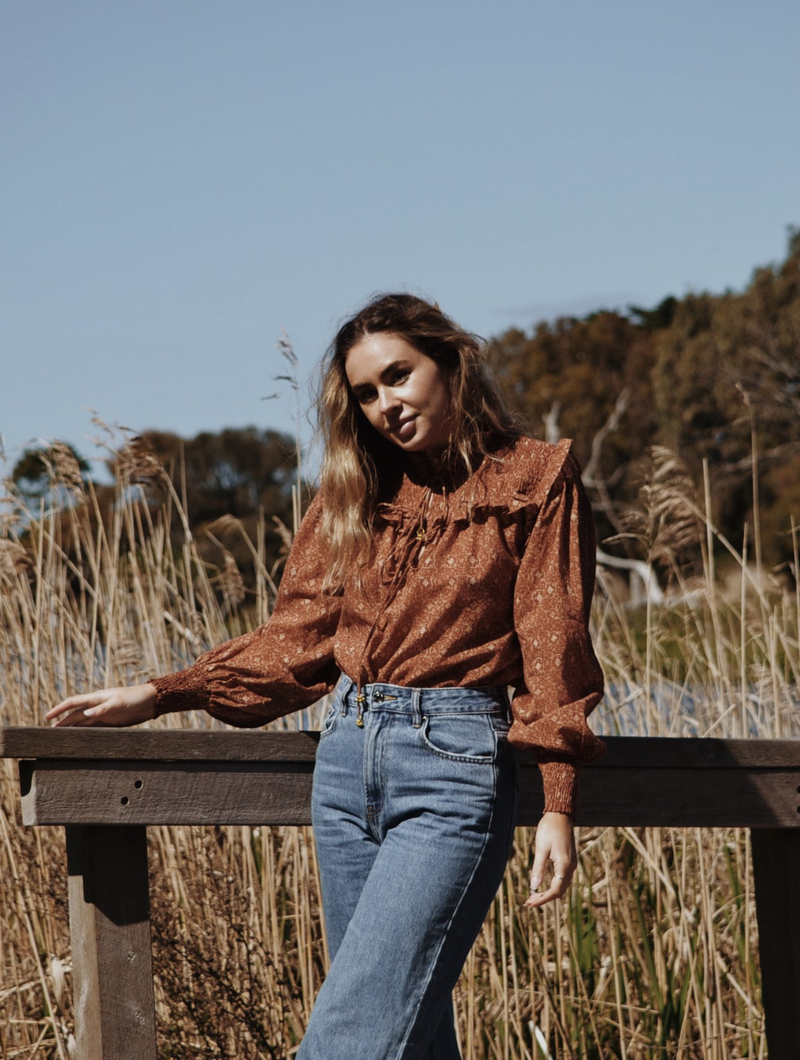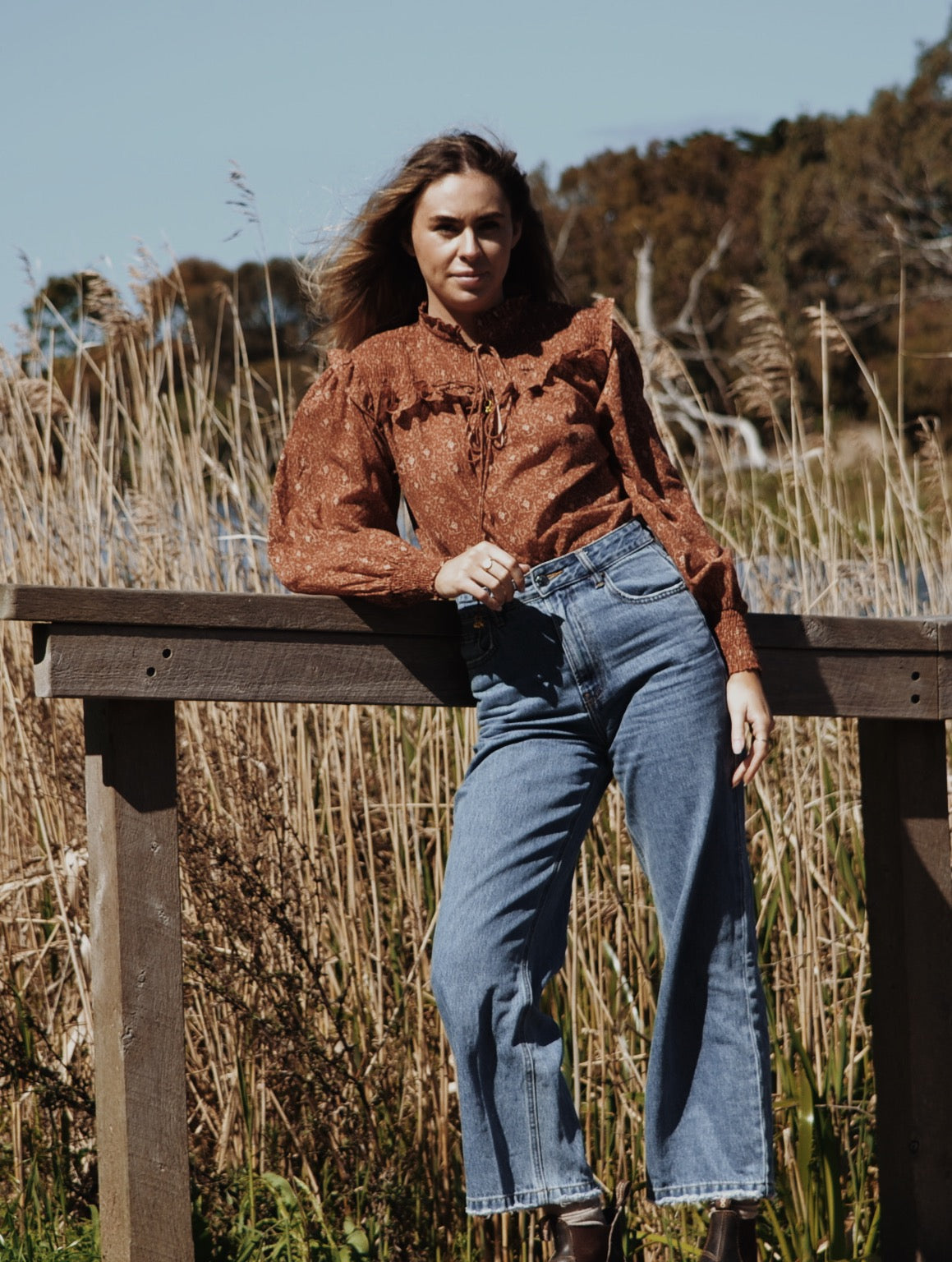 100% cotton. A blouse made for light and carefree days spent slowly outside in the garden. Modernised Edwardian, a beautifully floaty style that can be worn casually with your favourite jeans, or also has a slightly dressier edge in it's frill detailing. The shirred yoke can be worn open casually or as a high neck, making it also ideal for feeding. To get the ultimate wear out of your blouse, you can also flip in around to a closed high neck look too as seen in photos.