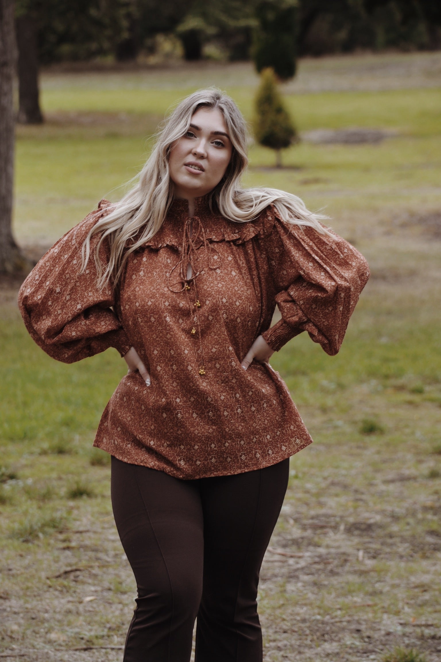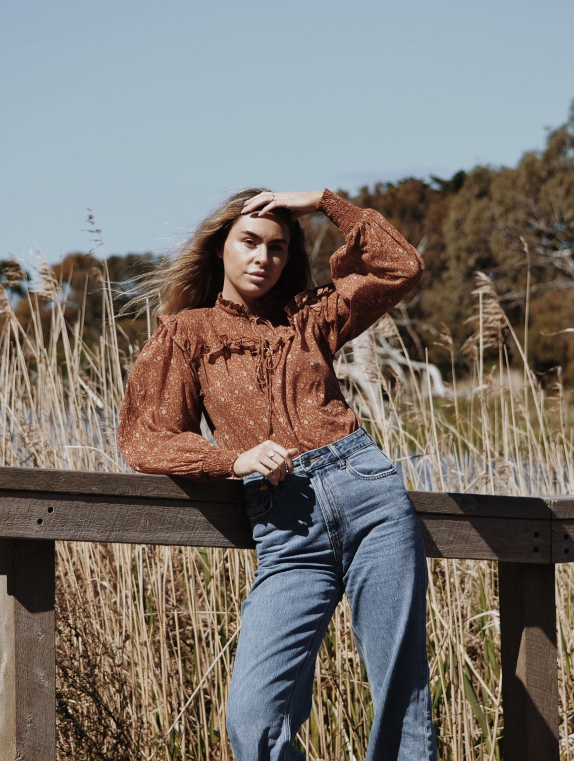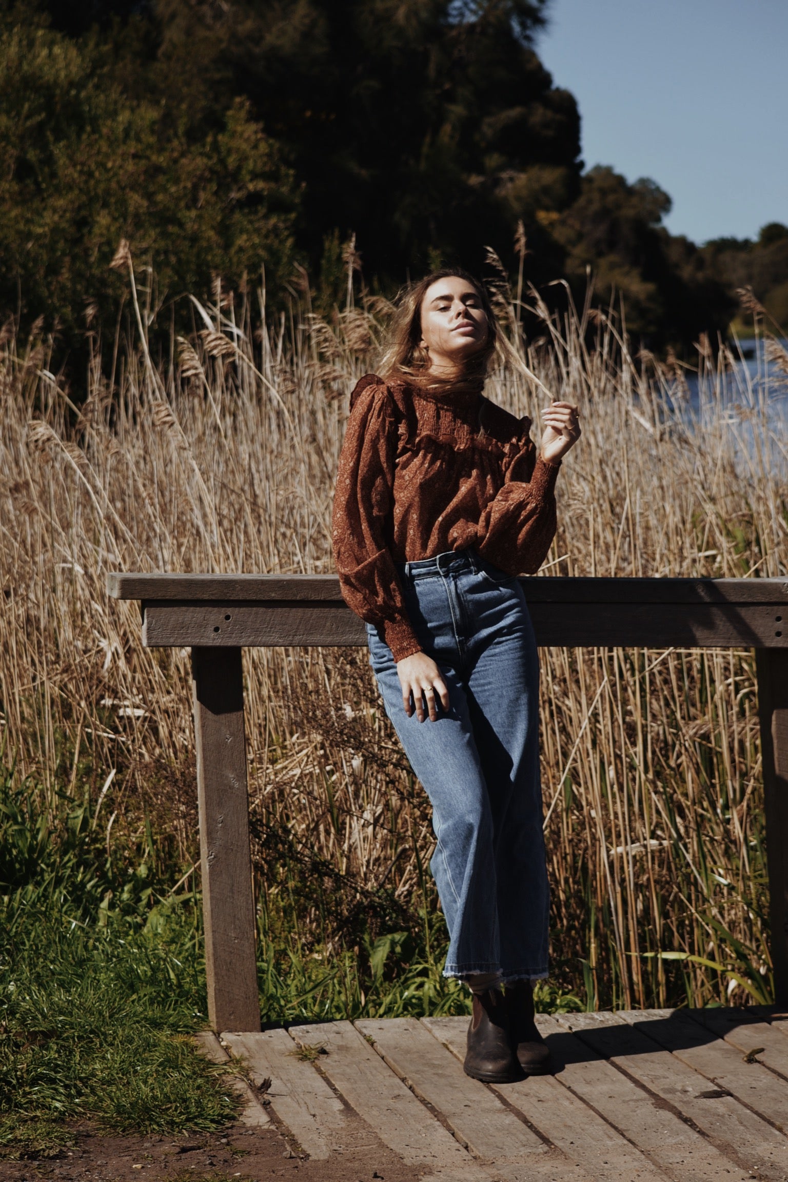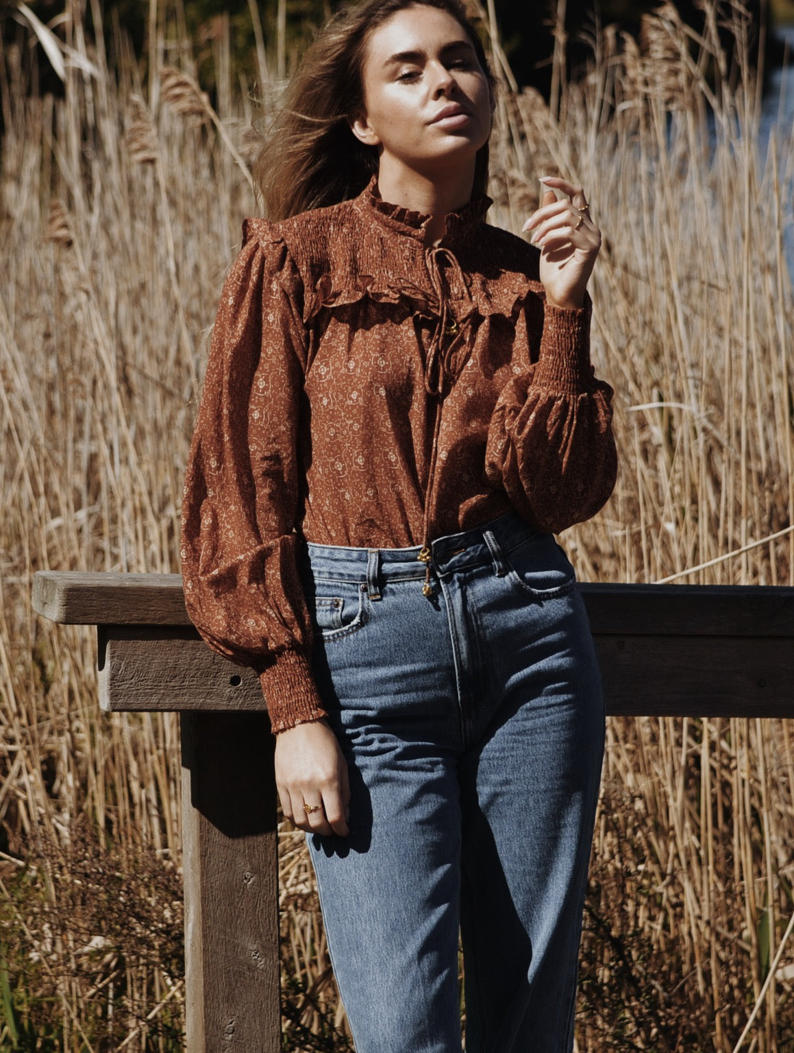 100% cotton. A blouse made for light and carefree days spent slowly outside in the garden. Modernised Edwardian, a beautifully floaty style that can be worn casually with your favourite jeans, or also has a slightly dressier edge in it's frill detailing. The shirred yoke can be worn open casually or as a high neck, making it also ideal for feeding. To get the ultimate wear out of your blouse, you can also flip in around to a closed high neck look too as seen in photos.