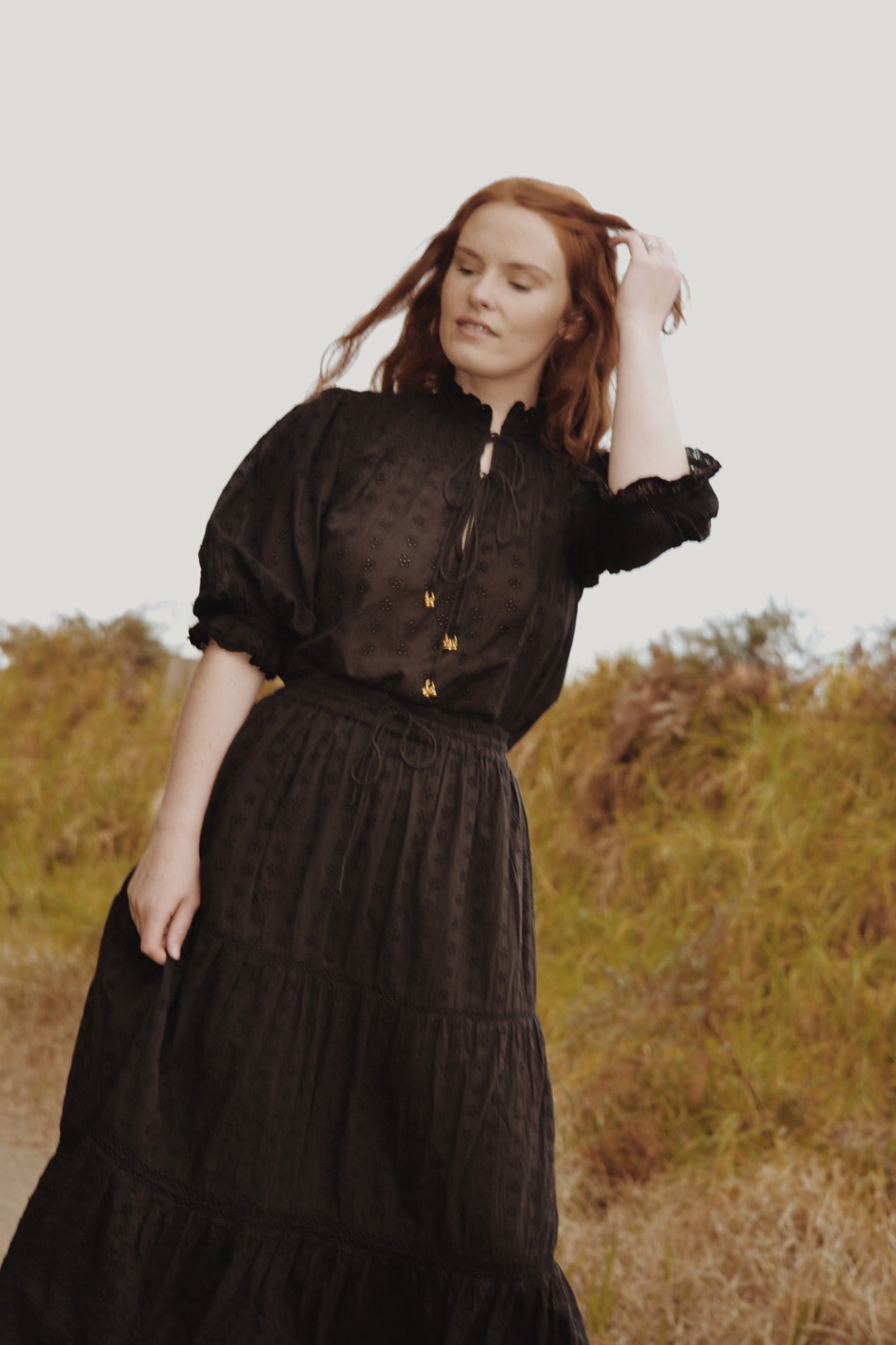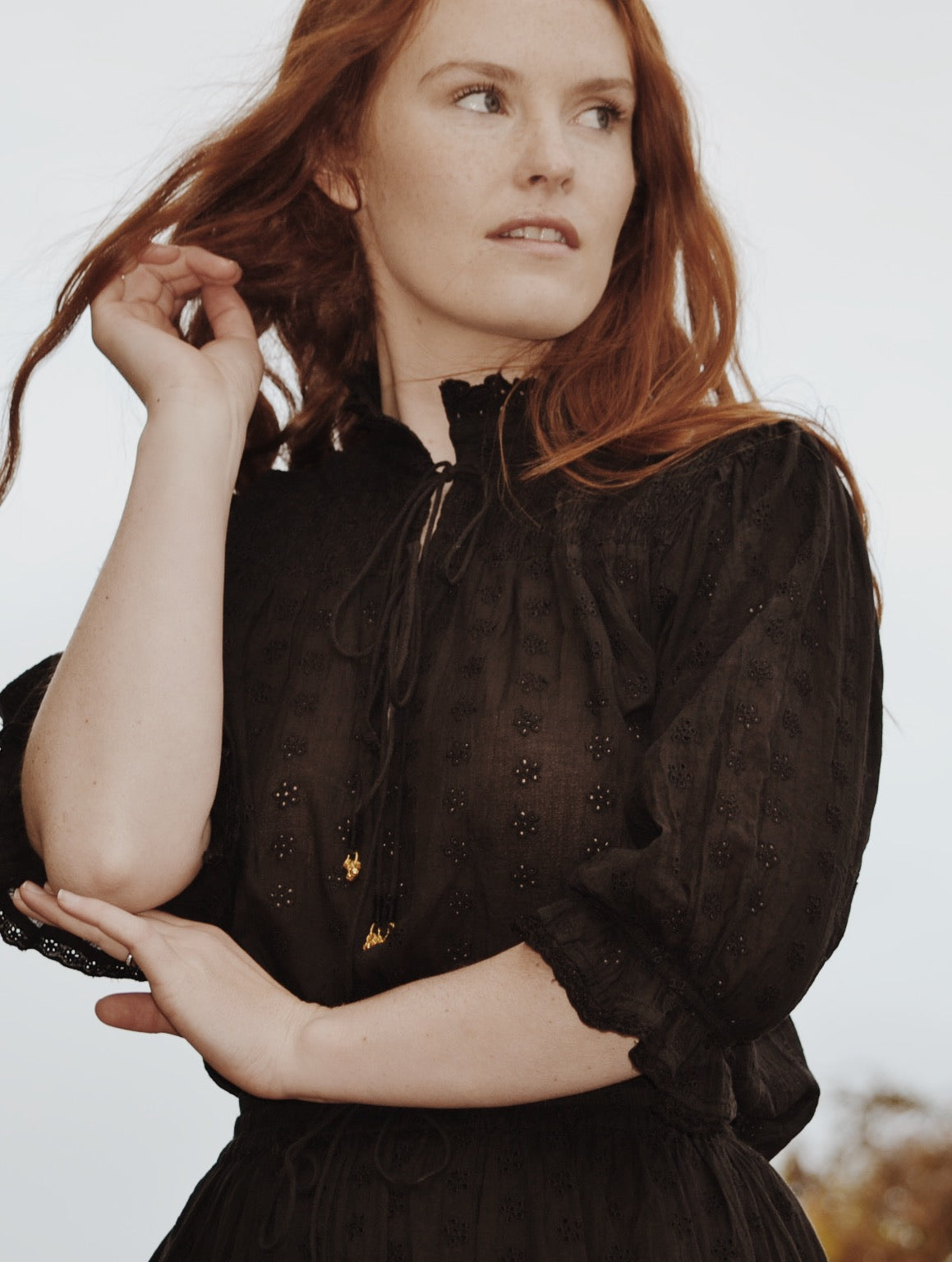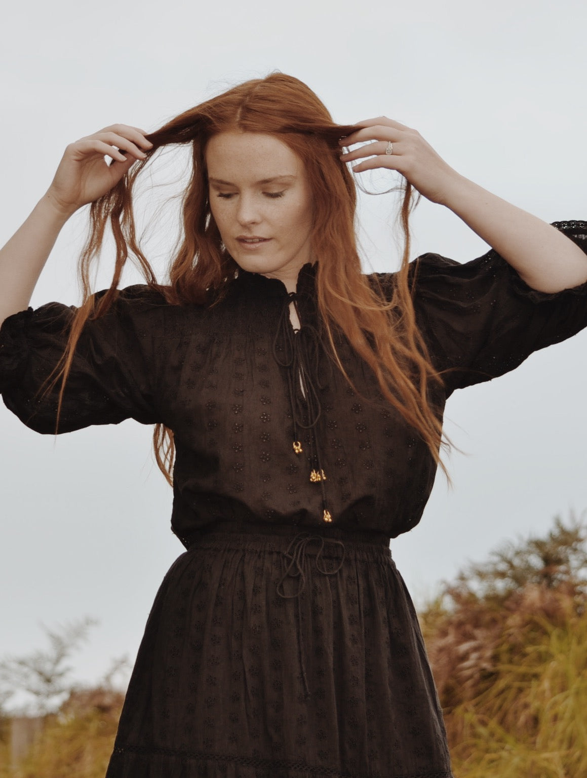 KATERINA BLOUSE WASHED BLACK COTTON LACE