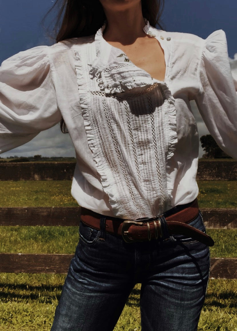 PAULINA WHITE CROSS STITCH COTTON BLOUSE