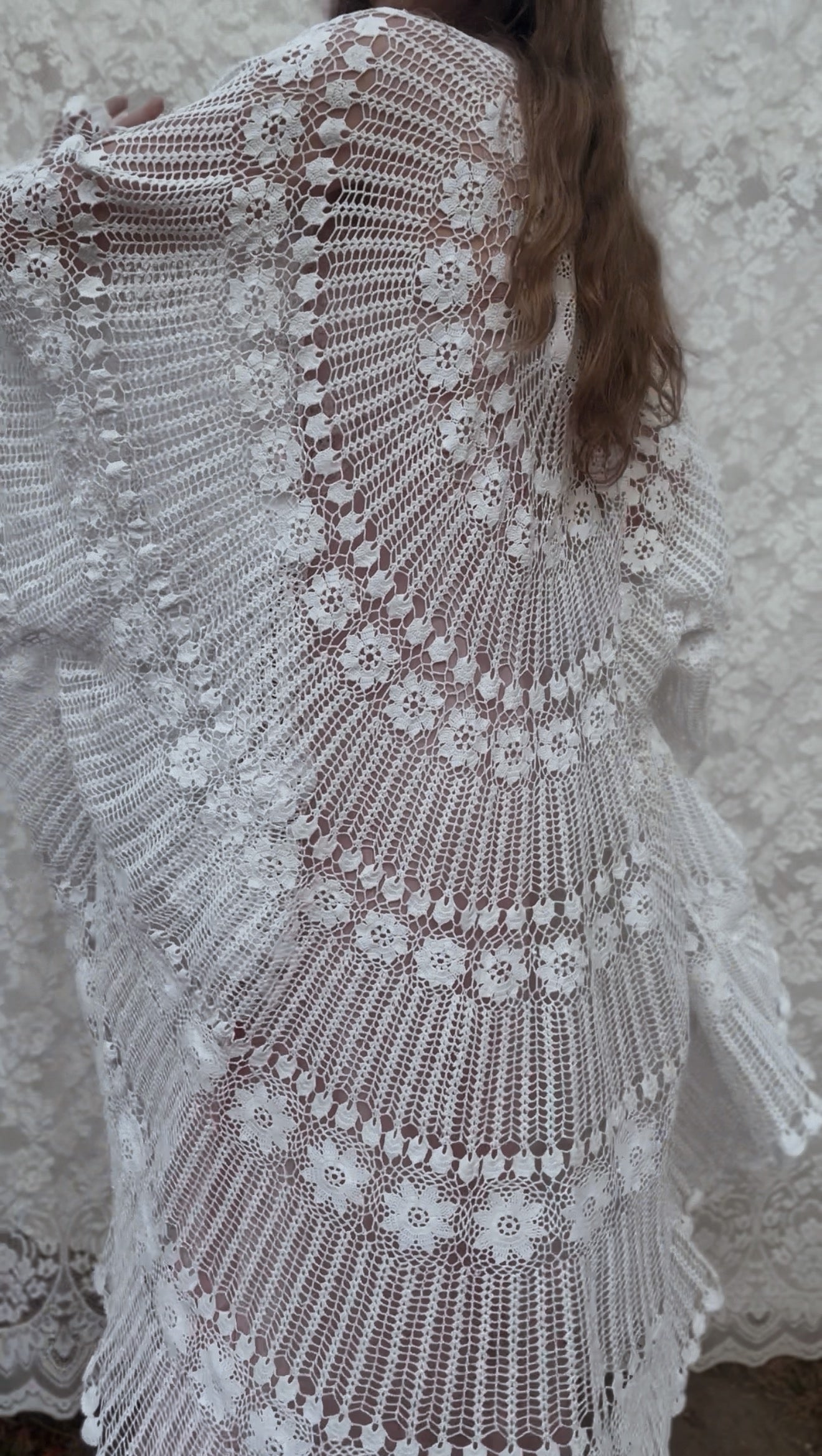 REWORKED - WHITE CROCHET THROW ONE SIZE